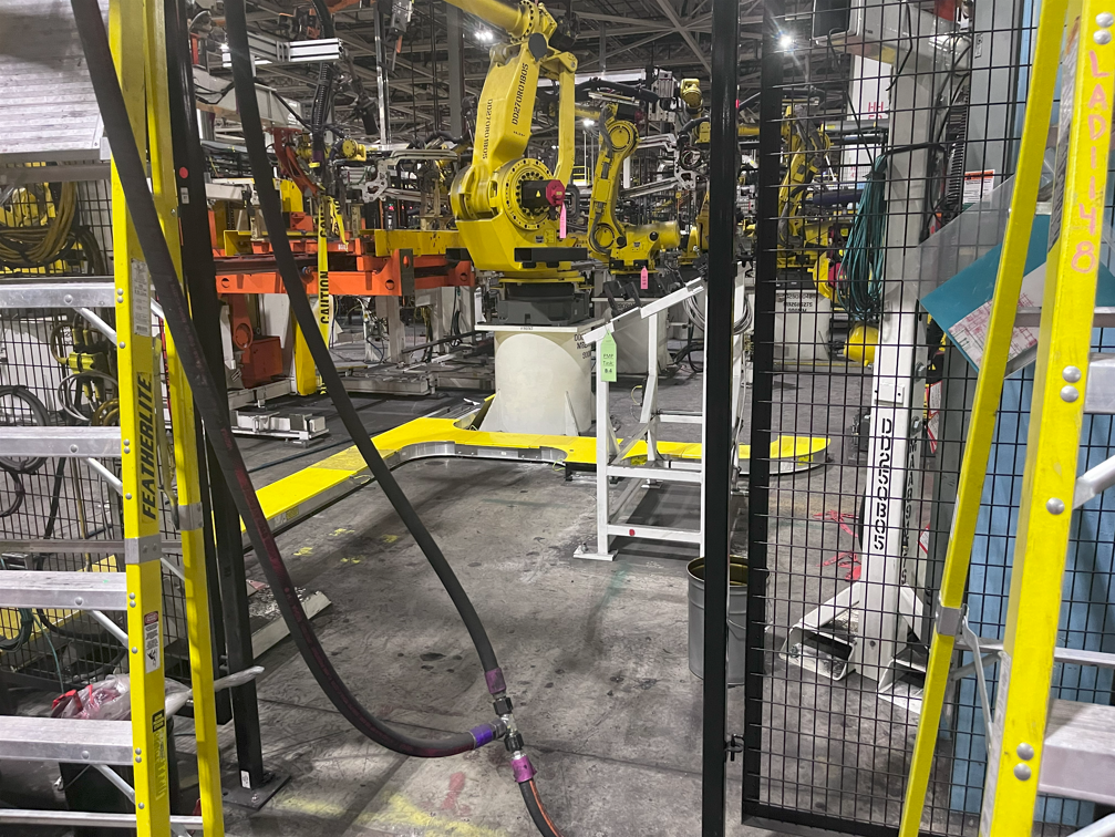 Working around the clock in two 12-hour shifts over seven days, we efficiently pulled cables for new robots, installed cable trays while adhering to GM’s stringent safety protocols, including extensive Lock-Out tag processes.