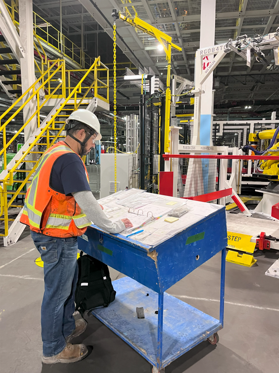 With only one week of preparation, our team mobilized up to 80 electrical and 18 mechanical workers to retrofit five existing cells and install a new cell in the body shop.